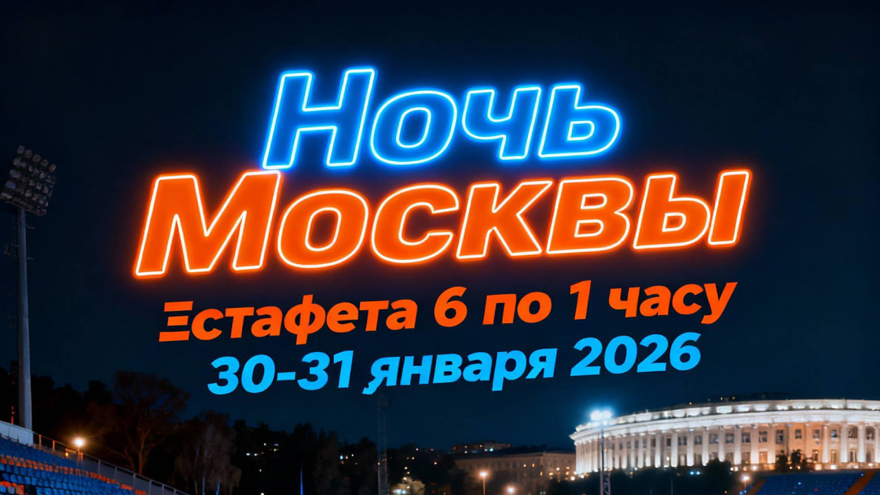«Ночь Москвы» №26 — XXVI легкоатлетический старт на выносливость, который пройдет 30–31 января 2026 года на велотреке «Крылатское» в Москве. Формат соревнования — ночная эстафета 6×1 час на манеже с кругом 200 метров