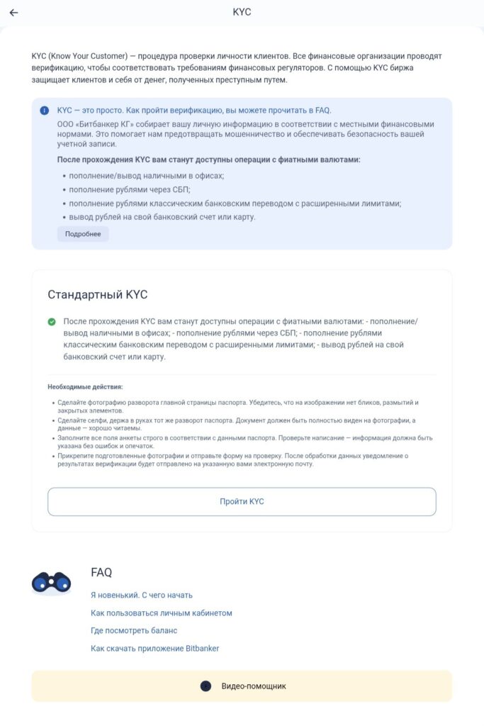 Процедура «Знай своего клиента» (KYC) — это стандартная проверка личности пользователя: паспортных данных, адреса проживания, а иногда и биометрических параметров для защиты от использования технологий подмены личности (дипфейков).